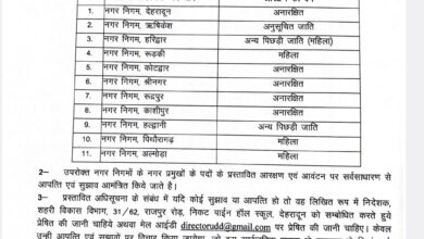 उत्तराखंड नगर निकायों में आरक्षण की अनंतिम अधिसूचना जारी; ऋषिकेश नगर निगम एससी तो हरिद्वार में महिला OBC, देखिए पूरी सूची..