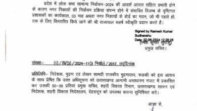 देहरादून: उत्तराखंड के नगर निगम, नगर पालिका और नगर पंचायतों में प्रशासकों का कार्यकाल तीन माह के लिए बढ़ा दिया…