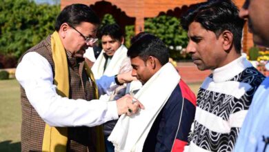 सिलक्यारा रेस्क्यू ऑपरेशन में टनल की खुदाई में अहम भूमिका निभाने वाले 12 रैट माइनर्स को शॉल ओढ़ाकर सीएम धामी ने किया सम्मानित