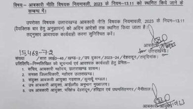 देहरादून: प्रदेश में जन विरोध और आलोचना को देखते हुए आबकारी विभाग ने व्यक्तिगत बार लाइसेंस के फैसले को फिलहाल…