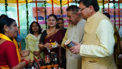सीएम धामी ने महिला स्वयं सहायता समूहों द्वारा लगाये गये राखी के स्टॉलों का किया अवलोकन