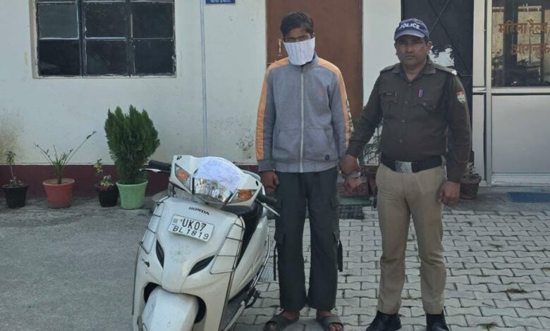 बरामदगी: चोरी की गयी स्कूटी एक्टिवा संख्या: यू0के0-07-बीएल-1819 रंग सफेद