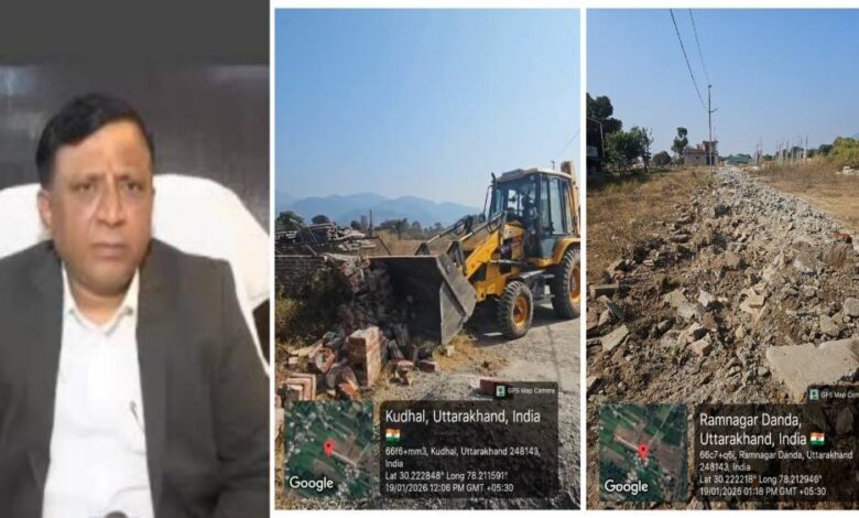 प्राधिकरण की टीम द्वारा घमंडपुर, रानीपोखरी, देहरादून क्षेत्र में दिनेश सजवाण, अवतार सिंह एवं राजेन्द्र सिंह कैंतुरा द्वारा लगभग 15 से 20 बीघा भूमि में की जा रही अवैध प्लॉटिंग पर ध्वस्तीकरण की कार्रवाई की गई। मौके पर बिना किसी वैधानिक अनुमति के आंतरिक सड़कों का निर्माण, भू-खण्डों का सीमांकन तथा कॉलोनी विकसित करने की तैयारी की जा रही थी। कार्रवाई के दौरान अवैध रूप से निर्मित सड़कों, पिलरों, सीमांकन एवं अन्य अस्थायी संरचनाओं को ध्वस्त किया गया।