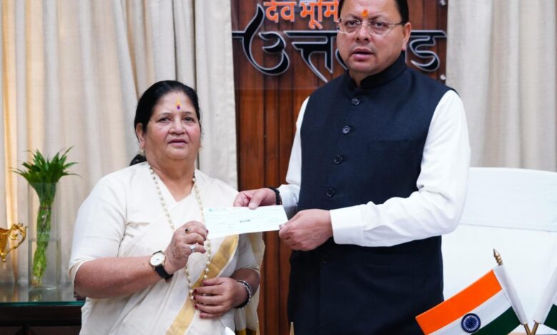 मुख्यमंत्री राहत कोष के लिए पर्वतारोही बछेंद्री पाल ने प्रदान किया 10 लाख का चेक