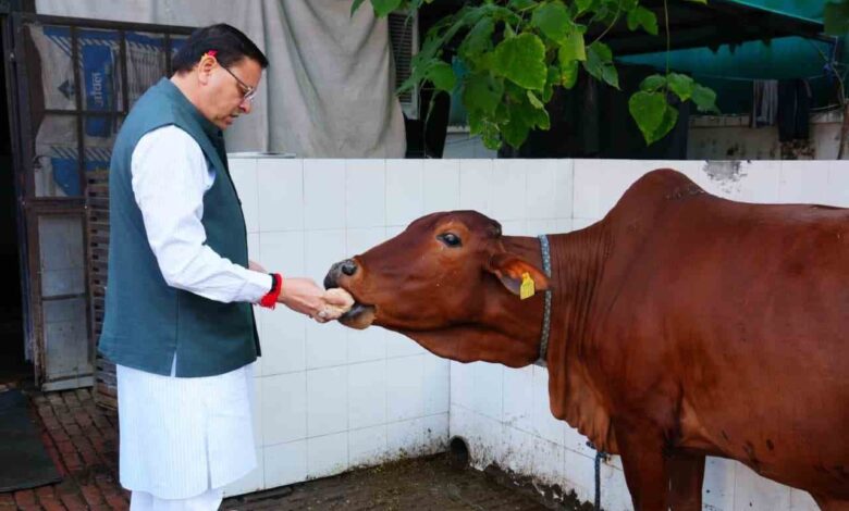 गोवर्धन पूजा के अवसर पर सीएम धामी ने की गौमाता की पूजा, गाय माता के सरंक्षण को लेकर की अपील